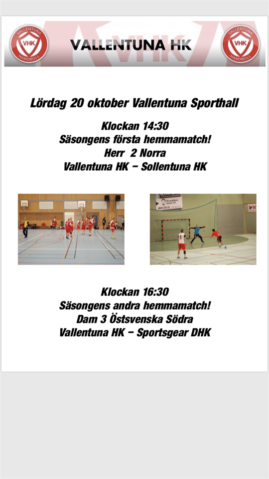 I dag kom Sollentuna på besök i sporthallen. Laget placerade sig på övre halvan i fjolårets norrtvåa och har stor erfarenhet av tuffa drabbningar. Vallentuna börjar matchen optimistiskt och tar en tvåmålsledning men motståndaren tar sakta men säkert över kommandot och drar ifrån i protokollet. Sollentuna styr matchen och man kan gå till halvtid med en klar ledning 9-14. I andra har Vallentuna svårt att hålla försvarsspelet på en tillräckligt hög nivå och Sollentuna kommer till alldeles för lätta avslut. Laget har svårt att komma till egna bra lägen och det är bara ett stabilt målvaktsspel av Charlie i kassen som förhindrar en total genomklappning. Slutresultatet stannar vid klar bortaseger med 20-37. Nu är det bara att ta lärdom och träna på att bli noggrannare både i anfall som försvar. Sollentuna kommer att troligen vara ett av lagen som aspirerar på seriseger. Nu är det bara att ladda batterierna för nästa lördag väntar en tufft bortamöte mot Uppsala HK som under förra säsongen spelade i Div.1 Målskyttar i Vallentuna Micke 7 (1) Erik 5 Tomas 3 Joel 2 Tobias 1 Sebastian 1 Charlie 1