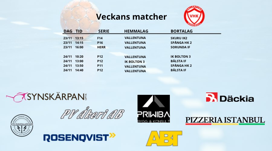 Här kommer veckans matcher Vallentuna HK 27 nov 2024 1kommentar